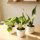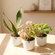 This Snake Plant, Jade Plant, and Philodendron Birkin Combo brings together structure, prosperity, and refined foliage in one elegant indoor plant set. The tall, architectural Snake Plant adds strength and air-purifying value, the fleshy green Jade Plant symbolizes growth and positivity, and the patterned leaves of Philodendron Birkin introduce a premium decorative touch. Together, this trio creates a clean, balanced look that fits perfectly into modern Indian homes and office interiors.