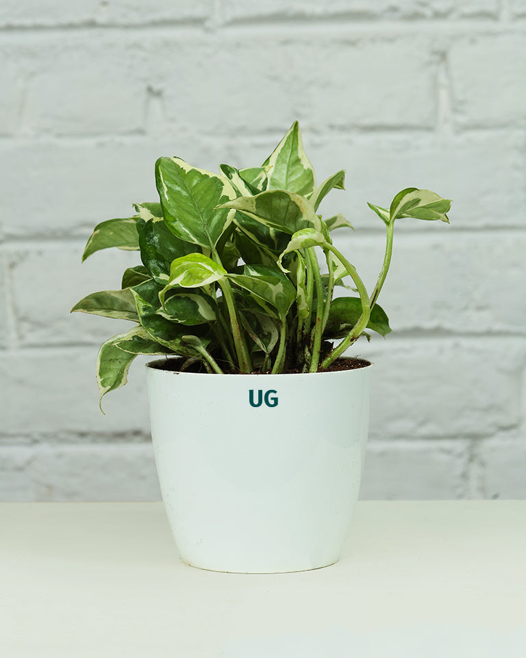 The N’Joy Money Plant (botanical name: Epipremnum aureum 'N'Joy') is a compact, highly decorative pothos variety admired for its crisp green leaves splashed with creamy white variegation. The sharp contrast and neat leaf shape give it a fresh, modern appearance, making it perfect for desks, shelves, hanging planters, and indoor styling.